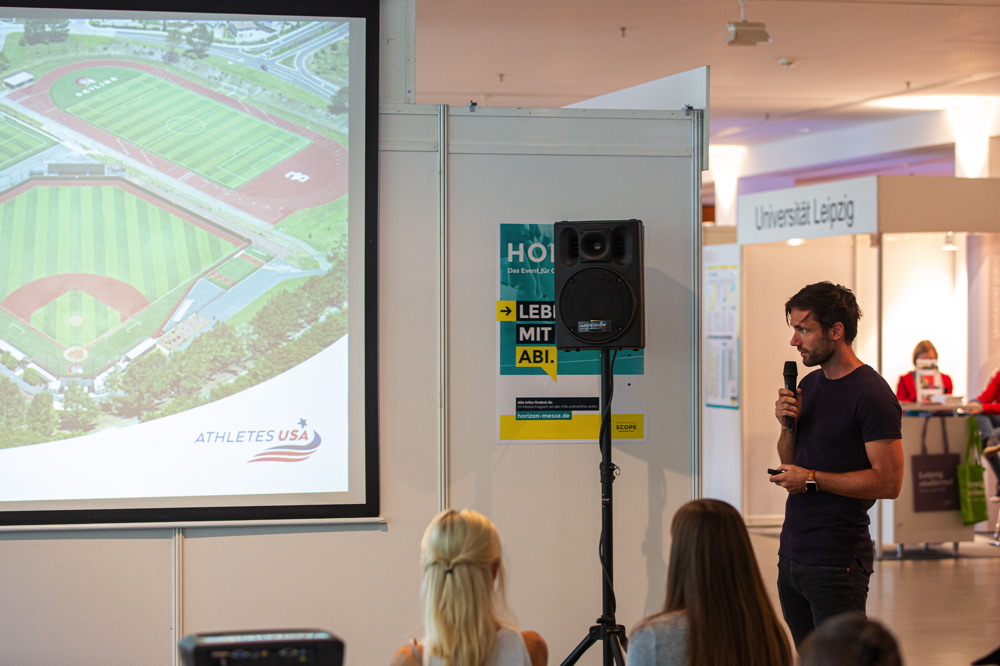 Wir wurden auch eingeladen und durften den Bereich “Sportstipendium in den USA” exklusiv in Workshops, Expertentalks und Einzelgesprächen vertreten.