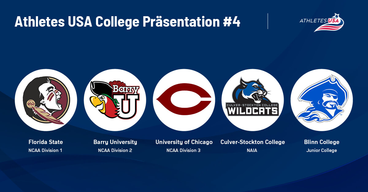 In unserer neuen Rubrik stellen wir Colleges und Universitäten, die zu unserem Netzwerk gehören, vor! Die etwa 2,000 Colleges und Universitäten unterscheiden sich vor allem  in Anzahl der Studenten, Lage, angebotenen Sportarten und Kosten (ohne Stipendium). Viel Spass!